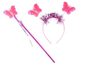 Jasno różowy kostium dla Małej Wróżki Motyl na pewno zachwyci nie jedną małą dziewczynkę. Zestaw został wyposażony w piękną tiulową jasno różową spódniczkę na gumce pokrytą małymi srebrnymi gwiazdkami oraz jasno różowe skrzydełka do których zostały przyczepione małe kolorowe motylki, opaskę i różdżkę. Tak piękny zestaw dosłownie będzie błyszczał na balu, przyjęciu urodzinowym, a to dzięki umieszczonym lampkom led w spódniczce oraz skrzydełkach. Zestaw zawiera:- jasno różowa świecąca tiulowa spódnica - świecące jasno różowe skrzydła- jasno różowa różdżka - jasno różowa opaskaWymiary spódniczki:- długość ok. 29 cm- szerokość w pasie od 40 do 80 cmZestaw nie zawiera bateriiDo spódniczki potrzebne są baterie 2x 1,5V AADo skrzydełek potrzebne są baterie 2x 1,5V AAKostium świetnie sprawdzi się na balu przebierańców, podczas przedstawienia w przedszkolu, na domowej imprezie, pomysłów do wykorzystania kostiumu jest na prawdę mnóstwo. Każda mała wróżka będzie zachwycona z takiego kostiumu.