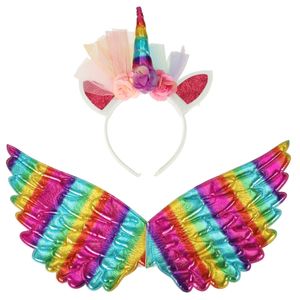 Tęczowy kostium jednorożca - idealny na bal przebierańców czy imprezę tematyczną. W zestawie tiulowa spódnica, opaska z rogiem i kolorowe skrzydła. Tworzywo: poliester. Długość spódnicy: 30 cm. Szerokość gumki: 2x 25-47 cm.